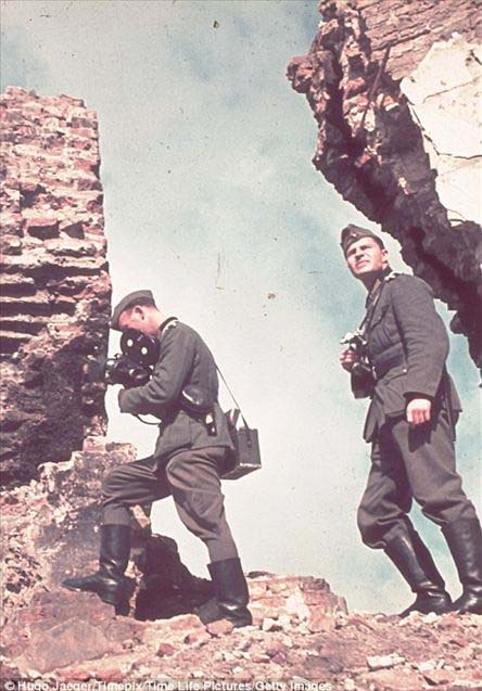 两名纳粹摄影师在寻找拍摄的角度。