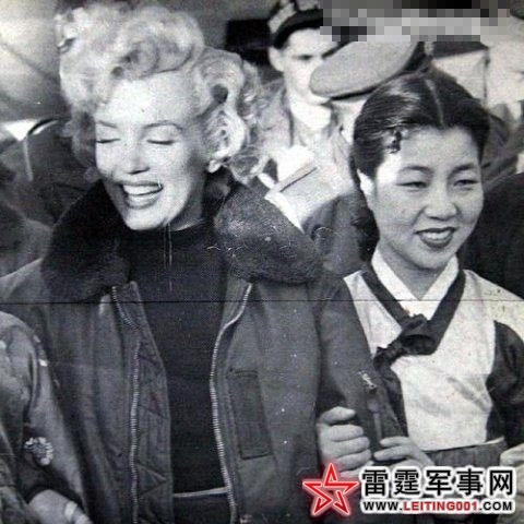 美国艳星玛丽莲.梦露在朝鲜前线慰问联合国军官兵